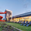 Dienende Bereiche umhüllt mit haltgebendem Klinker stehen in einem Wechselspiel mit transparenten, Natur und Außenanlagen in sich ziehenden Dialog. Ein Konzept mit Fokus auf besondere Details, Materialien und auf innere Betriebsabläufe hin optimiert.