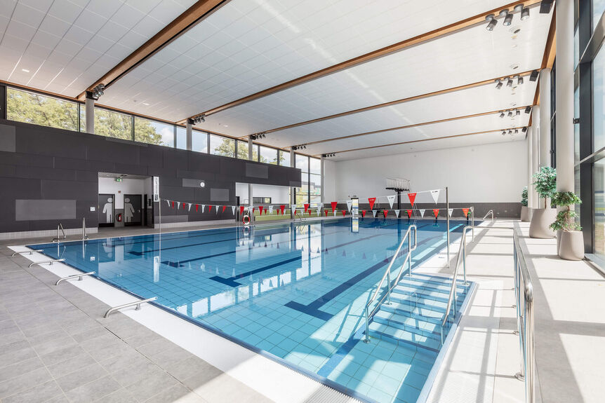 Als letzten Baustein am innerstädtischen Schulcampus in Pfaffenhofen wird das Angebot des Grund- und Mittelschulen-Neubaus sowie der Dreifachsporthalle mit einem Sport- und Familienbad erweitert. Trotz widriger Randbedingungen im Baugrund konnte mit 690 m² Wasserfläche ein kompaktes Bad für Schulen, Vereine und Familien umgesetzt werden. Über eine weiterführende Erörterung der Anforderungen gelang zudem die Einbindung eines kompakten Saunaangebotes.