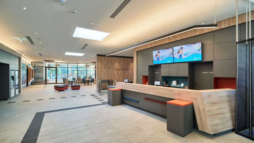 Dienende Bereiche umhüllt mit haltgebendem Klinker stehen in einem Wechselspiel mit transparenten, Natur und Außenanlagen in sich ziehenden Dialog. Ein Konzept mit Fokus auf besondere Details, Materialien und auf innere Betriebsabläufe hin optimiert.