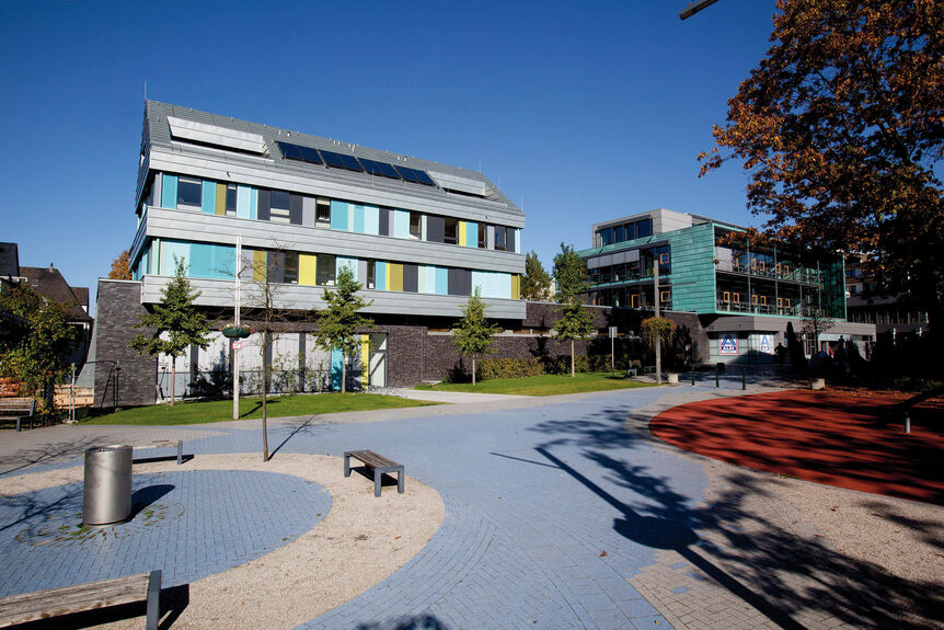 Dieses neu entstandene Ärztehaus, gekrönt mit zwei Penthäusern, steht nicht nur für innerstädtisch hochwertiges Wohnen und Arbeiten, sondern bildet zudem städtebaulich einen neuen, attraktiven Platz.