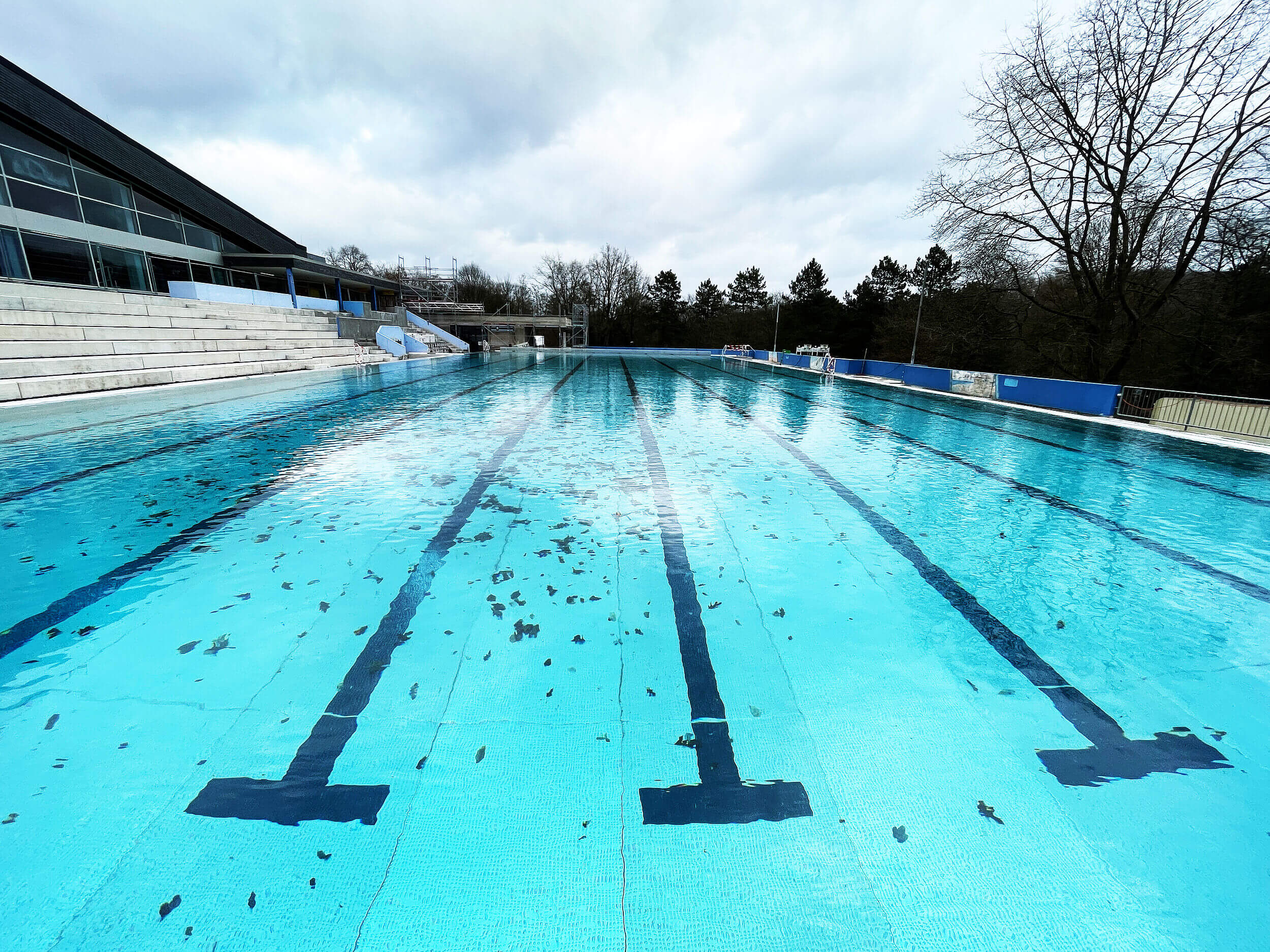 Damit bildet das Projekt eine Ausnahme zu unseren Anderen, welche überall in Deutschland und sogar in Österreich verteilt sind. Zurzeit werden im Freibadbereich des Panoramabades zwei von drei Becken durch neue Edelstahlbecken ersetzt. Bei unserem Besuch waren die Becken bereits mit Wasser gefüllt und luden zum Schwimmen ein. Jetzt muss es nur noch ein bisschen wärmer werden bevor wir das kühle Nass direkt um die Ecke wieder genießen können.